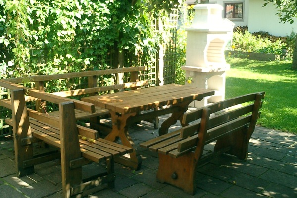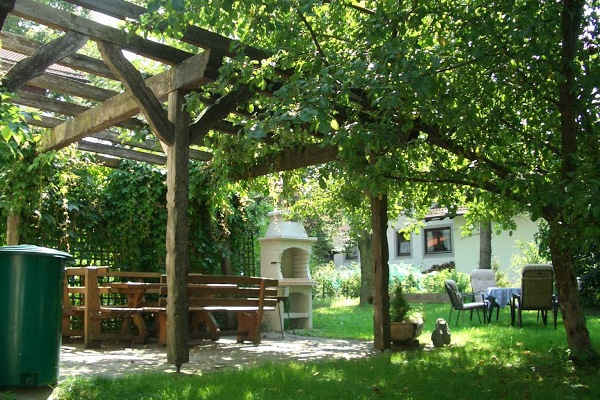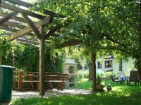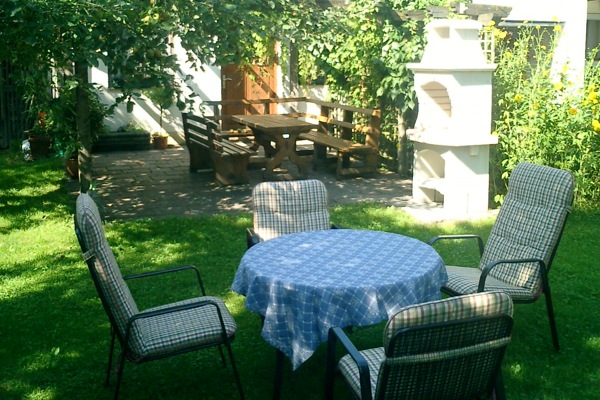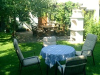 - gemütliche Terrasse im angeschlossenen Garten mit Liegewiese